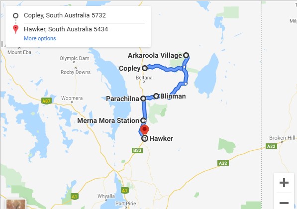 Tour starts at Copley Caravan Park and finishes at Hawker, South Australia.